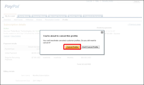 - Finally, click on 'Cancel Profile' in the confirmation window.
